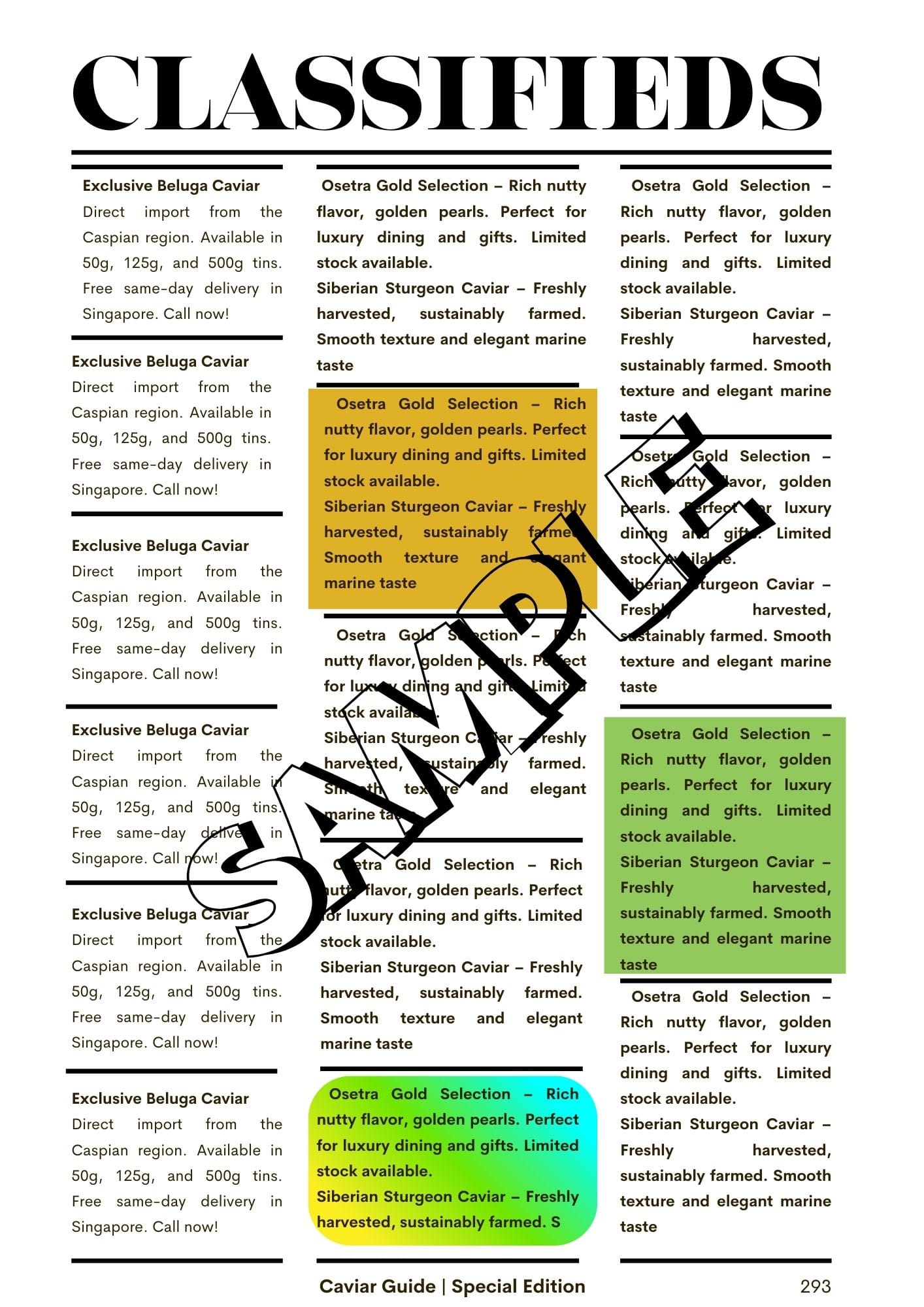 Up to 200 characters, short announcement in the Classified section.